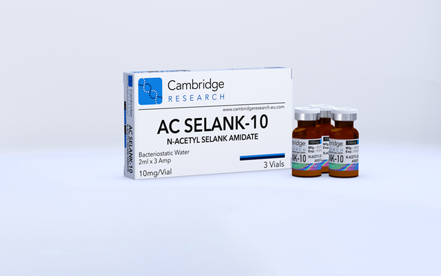 AC Selank-10 is an acetylated derivative of Selank designed to enhance peptide stability and bioavailability in research settings. This Cambridge Research formulation provides 10 mg per vial and is widely studied in neurochemical and cognitive research applications.