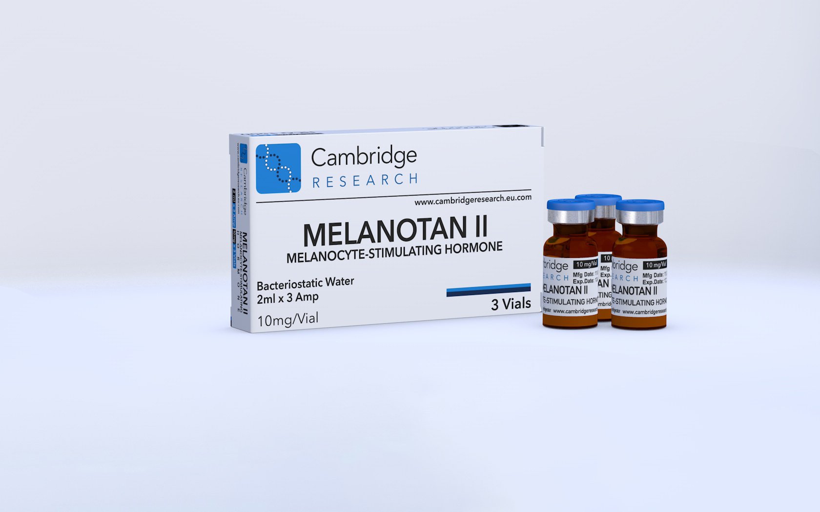 Composition: Each vial contains 10 milligrams (MG) of MELANOTAN II, a peptide hormone known for its melanocyte-stimulating properties.